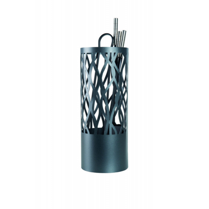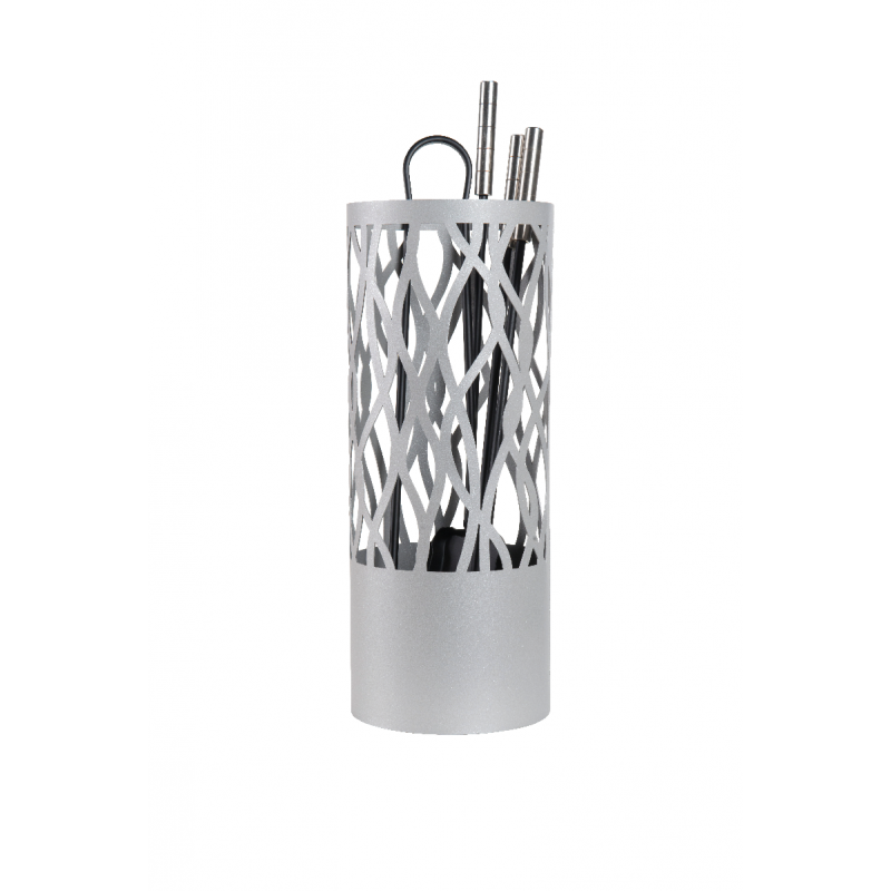 4 accessoires met gesatineerd RVS handvat (schop, firebrand, borstel en tang).