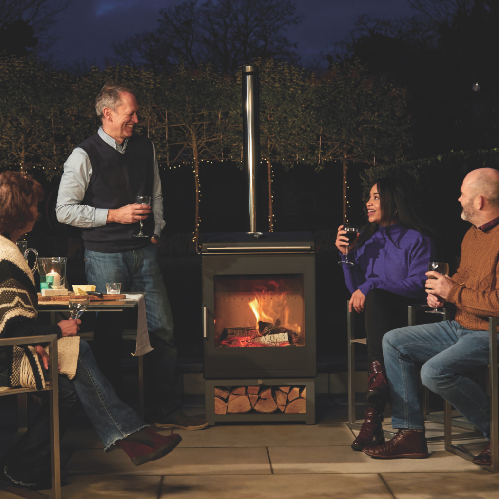 De grote verbrandingskamer zorgt voor voldoende warmte en een prachtig vlammenspel waardoor U in een gezellige sfeer kan genieten van een aperitiefje of na de maaltijd nog tot in de late uurtjes kan genieten van het buitenleven!